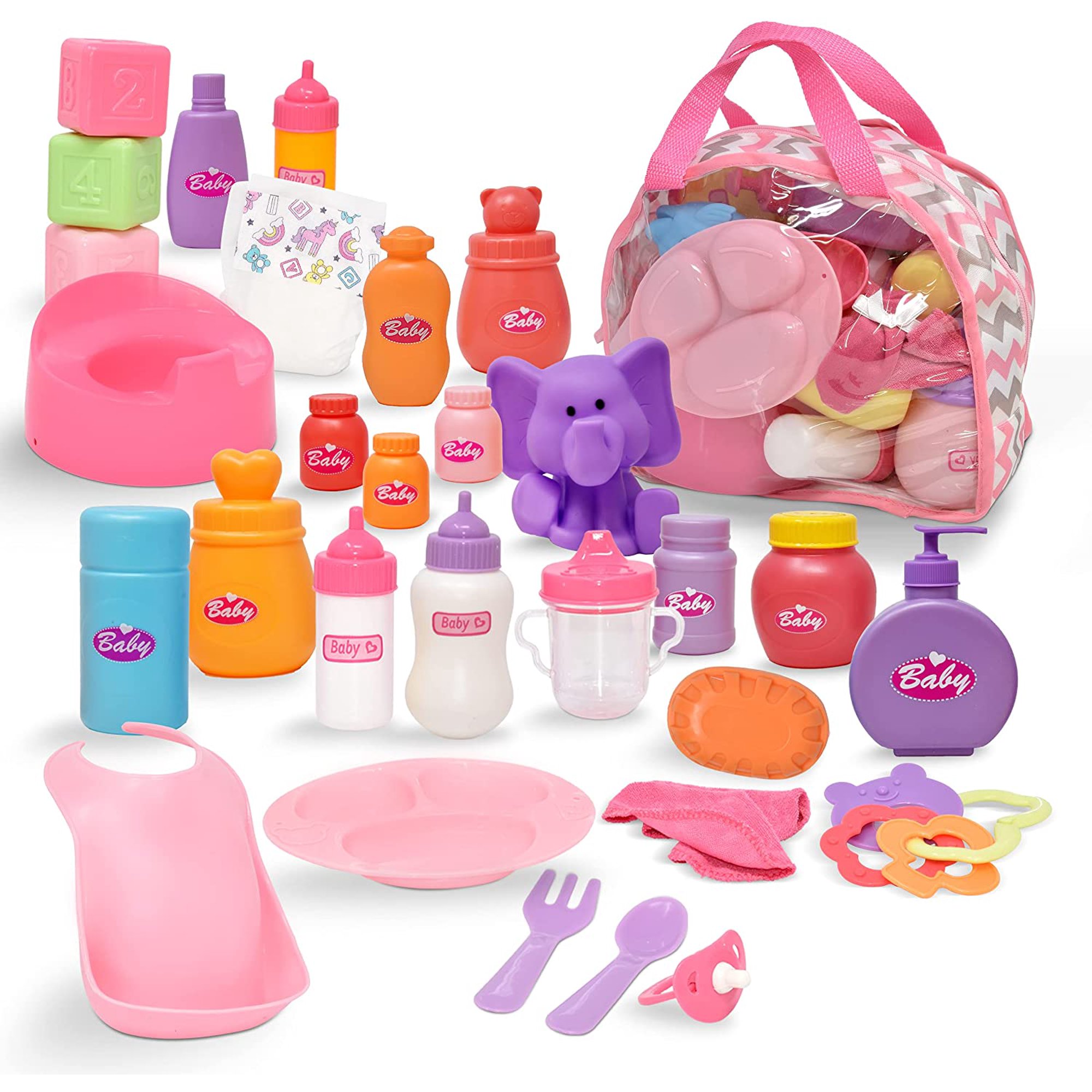 Htooq Baby Doll Diaper Bag With Accessories Doll Care Kit Doll Feeding Set With Changing Accessories Includes Doll Bottles Walmart Canada